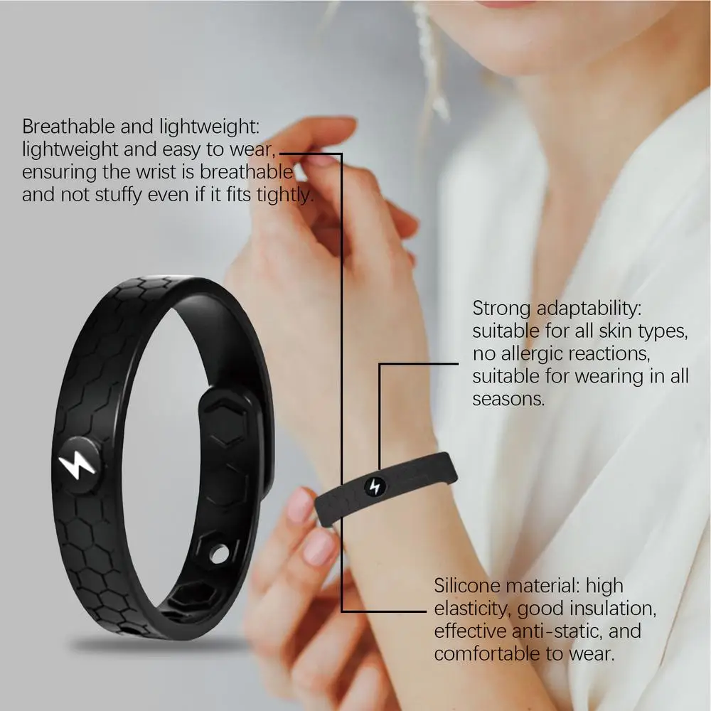 4.Effective Anti-Static: Made from silicone material, this bracelet features an adjustable size for a perfect fit, offering high elasticity, good insulation, and anti-static protection.